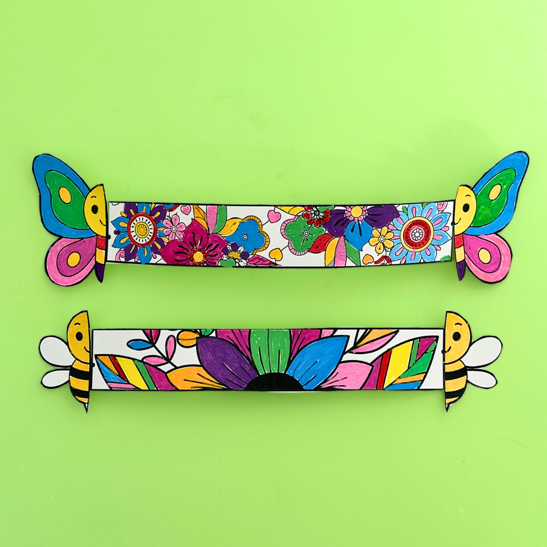 Buzz into creativity with our Insect Bracelet Printable! Kids can colour, decorate, and cut out their own bracelets featuring a beautiful butterfly or a busy bee. Once finished, simply wrap them around your wrist to show off your buggy creation! A fun, hands-on craft that’s perfect for nature lovers and little artists alike.