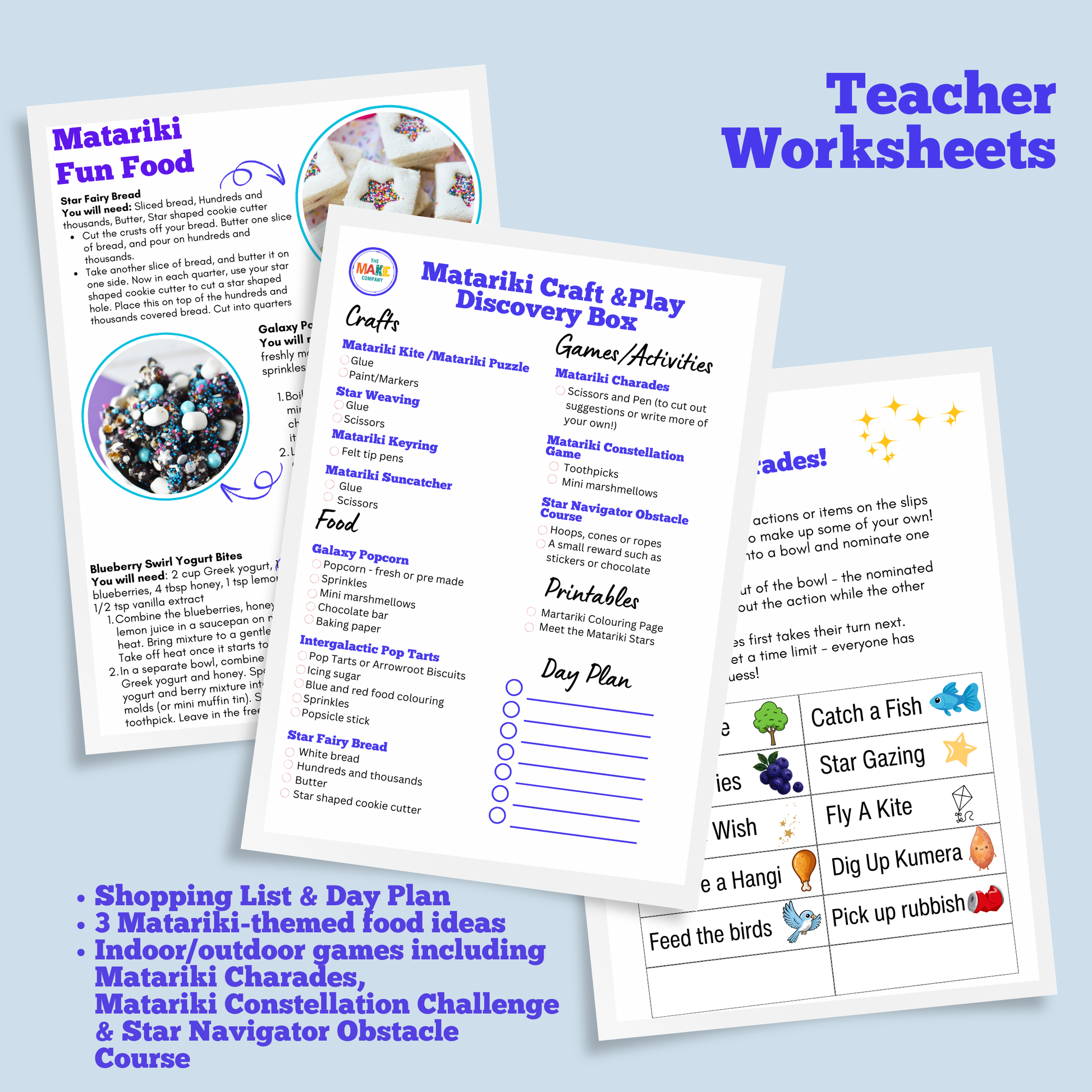 Filled with engaging crafts, group games, puzzles, and even food ideas, this special edition box makes it easy to run a full day of Matariki-themed activities for classrooms, school holiday programmes, or community groups.