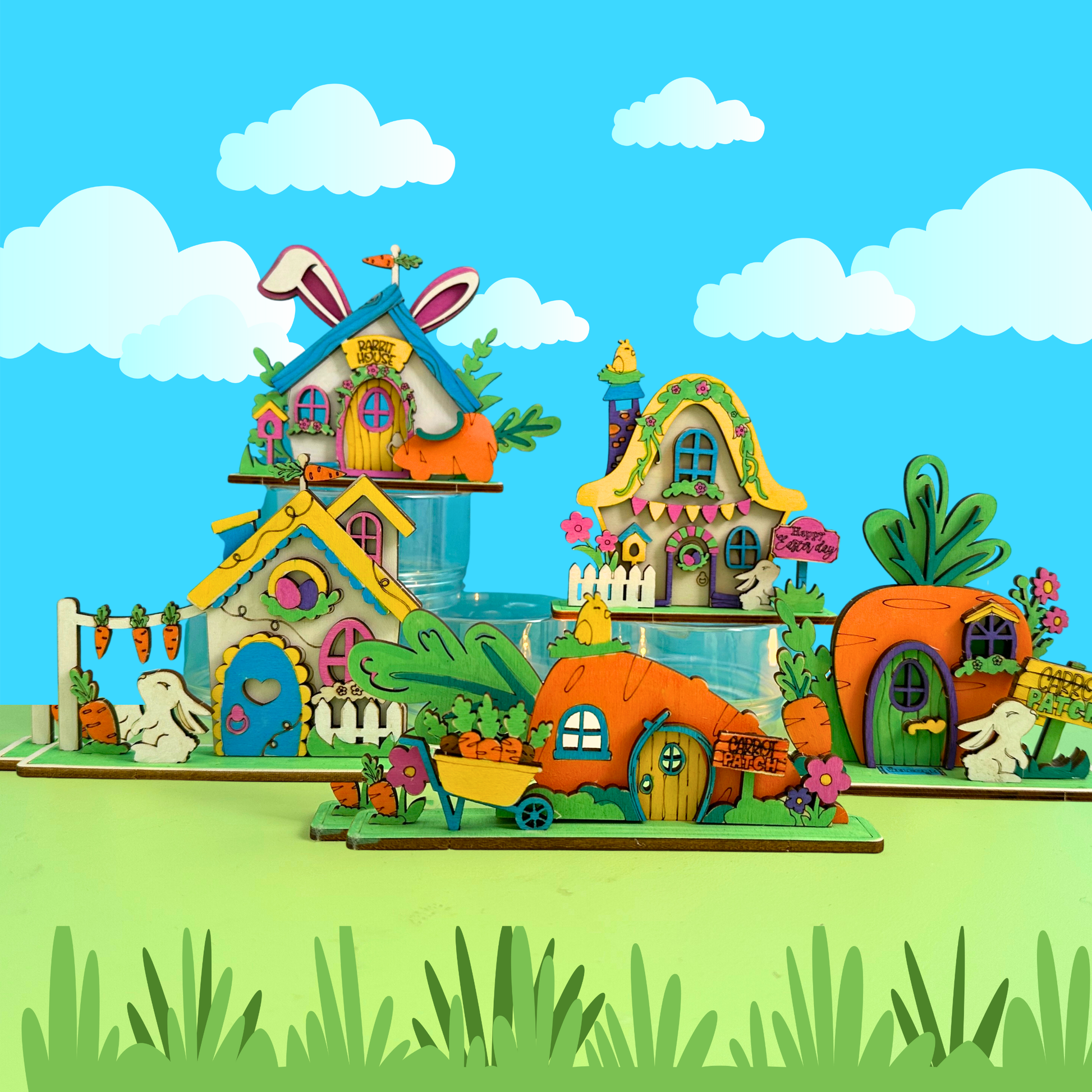 Hop into a world of bunny cuteness with our Bunny Burrows! This adorable craft set features five charming bunny houses inspired by cosy cottages, carrots, and all things Easter.