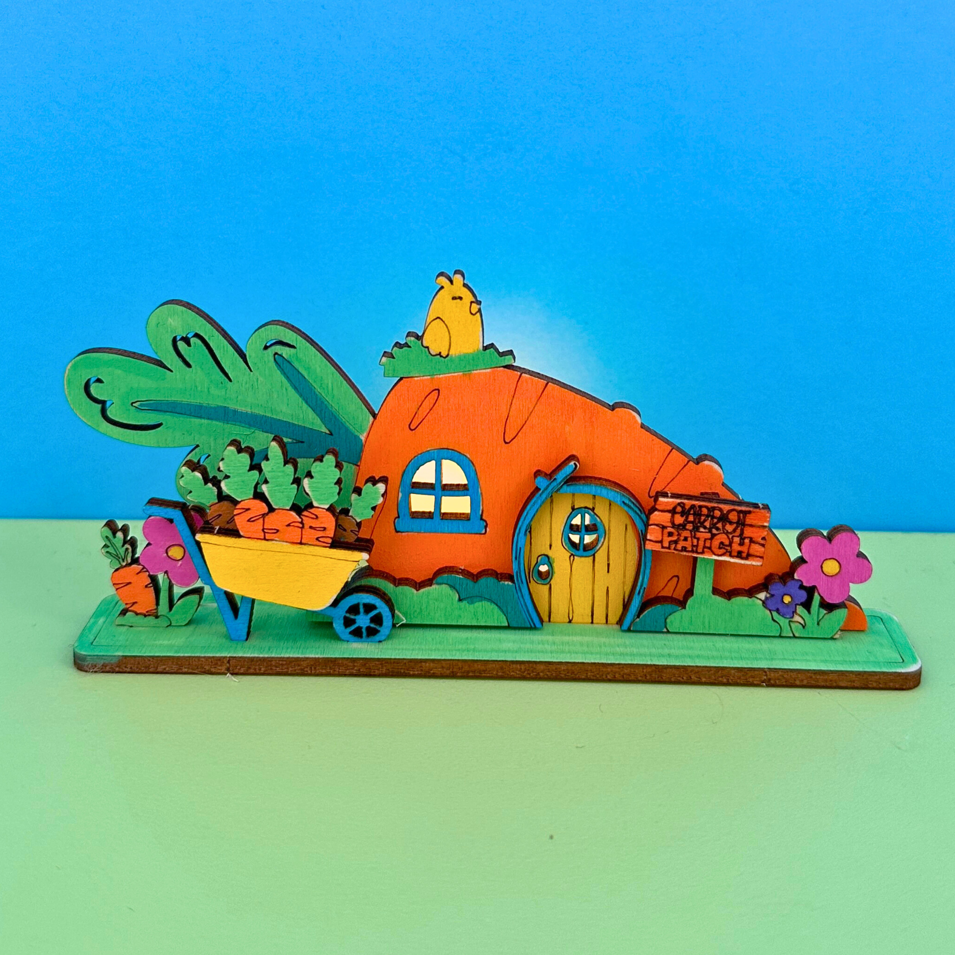 Kids will love decorating their cottages with paint pens, then gluing on the layered pieces to create their very own bunny neighbourhood. Made from wood and full of whimsical details, this hands-on activity encourages creativity, fine motor skills, and lots of imaginative Easter fun. A delightful craft that’s just begging to be displayed!