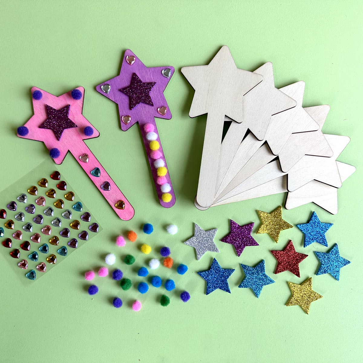 Fairies and Wizards will love these wooden wands that are perfect for decorating! Great for groups of children as a bulk craft kit, and perfect for parties! The pack includes enough for children to let their imagination run wild with decorating with poms poms and gems and you can either paint or use felt tip pens to add more colour!