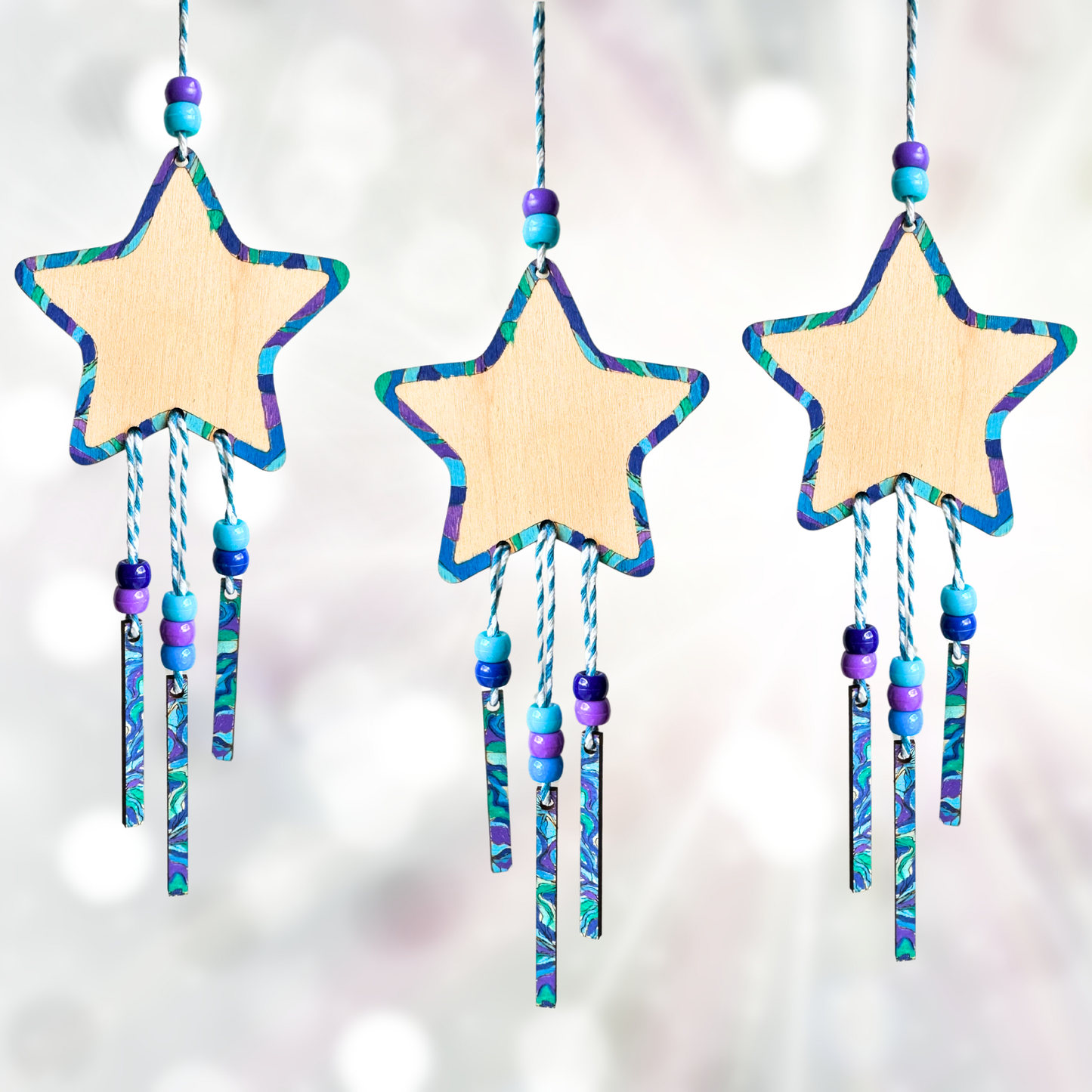 Create a beautiful star windchime! Colour in the wooden star, string on the beads and decorate however you like - you may even like to name it after your favourite star in the Matariki Constellation.