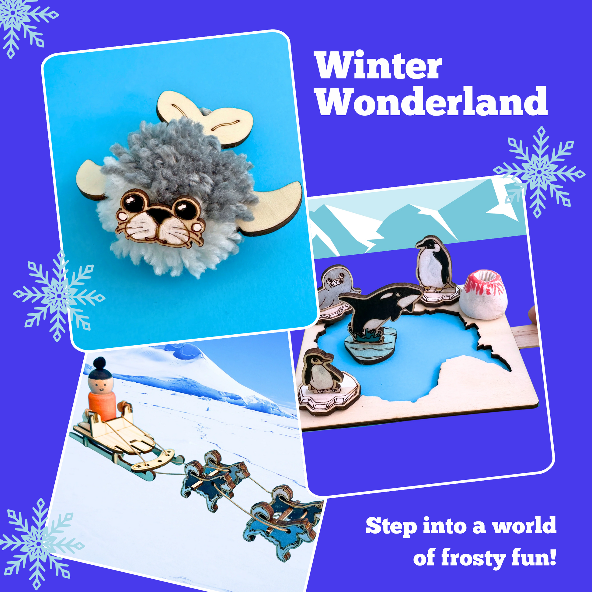 Step into a world of frosty fun with our Winter Wonderland Craft & Play Discovery Box! This magical box is packed with everything you need for a season full of creativity—designed for up to 10 children.