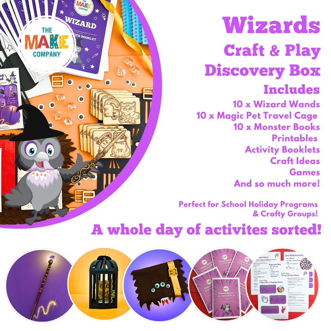 The Wizard Craft and Play Discovery Box has everything you need to run an exciting, full-day holiday program, event or party! Packed with magical crafts to make and activities to do this box will delight kids of all ages.